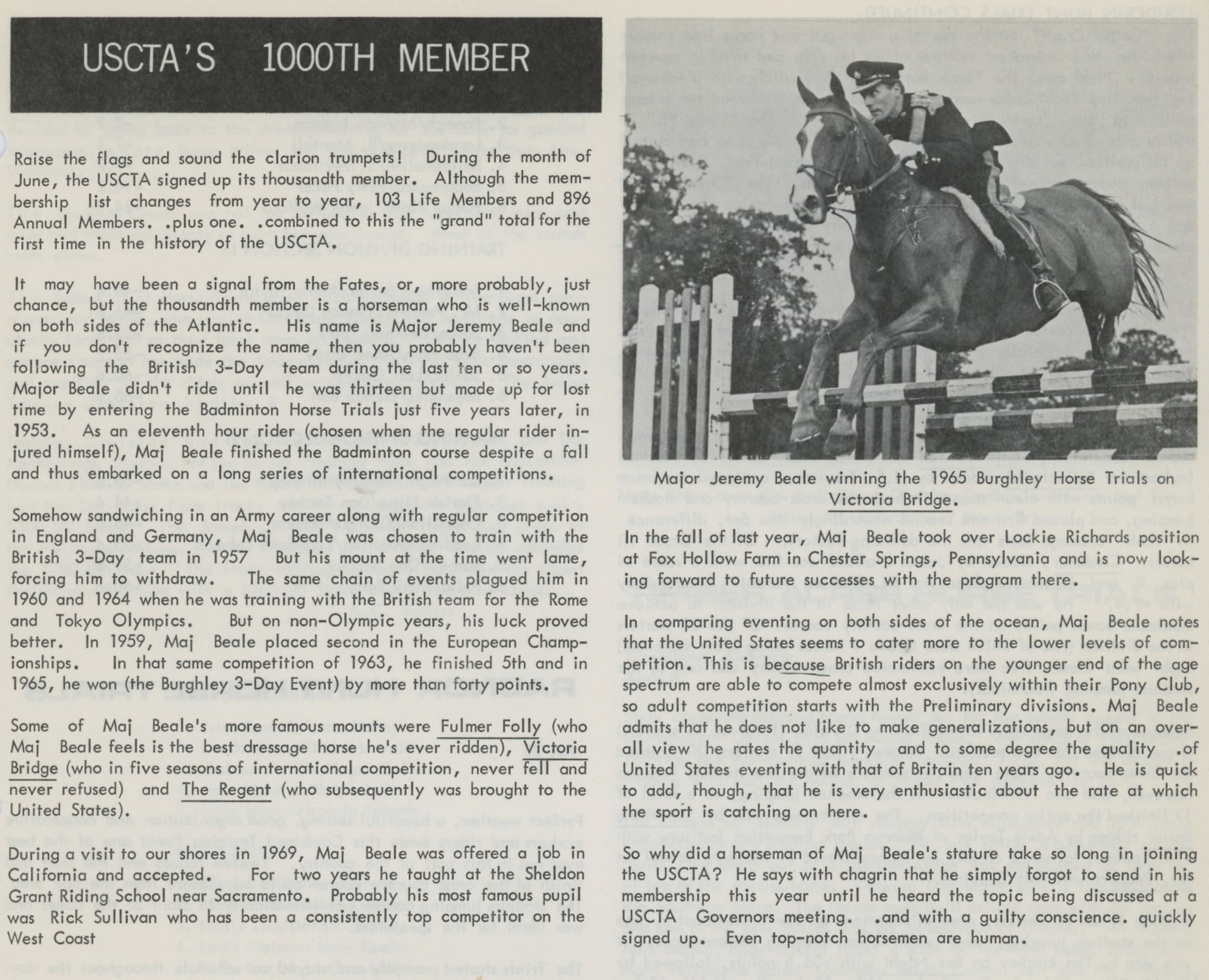 The first edition of the USCTA News is published along with the first USCTA Rules For Eventing.