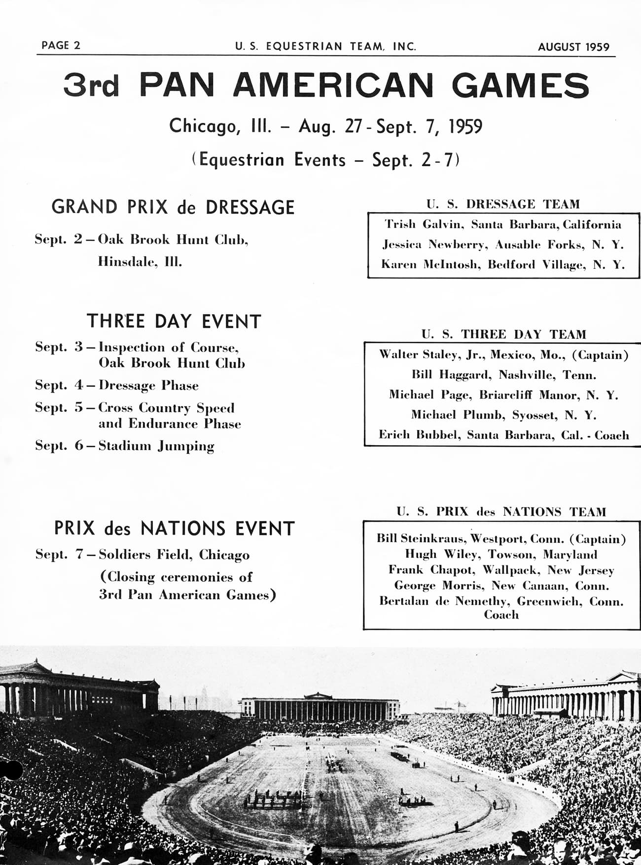 The United States Combined Training Association (USCTA) was founded the week of September 2, 1959 during the Pan American Games in Chicago, Illinois.