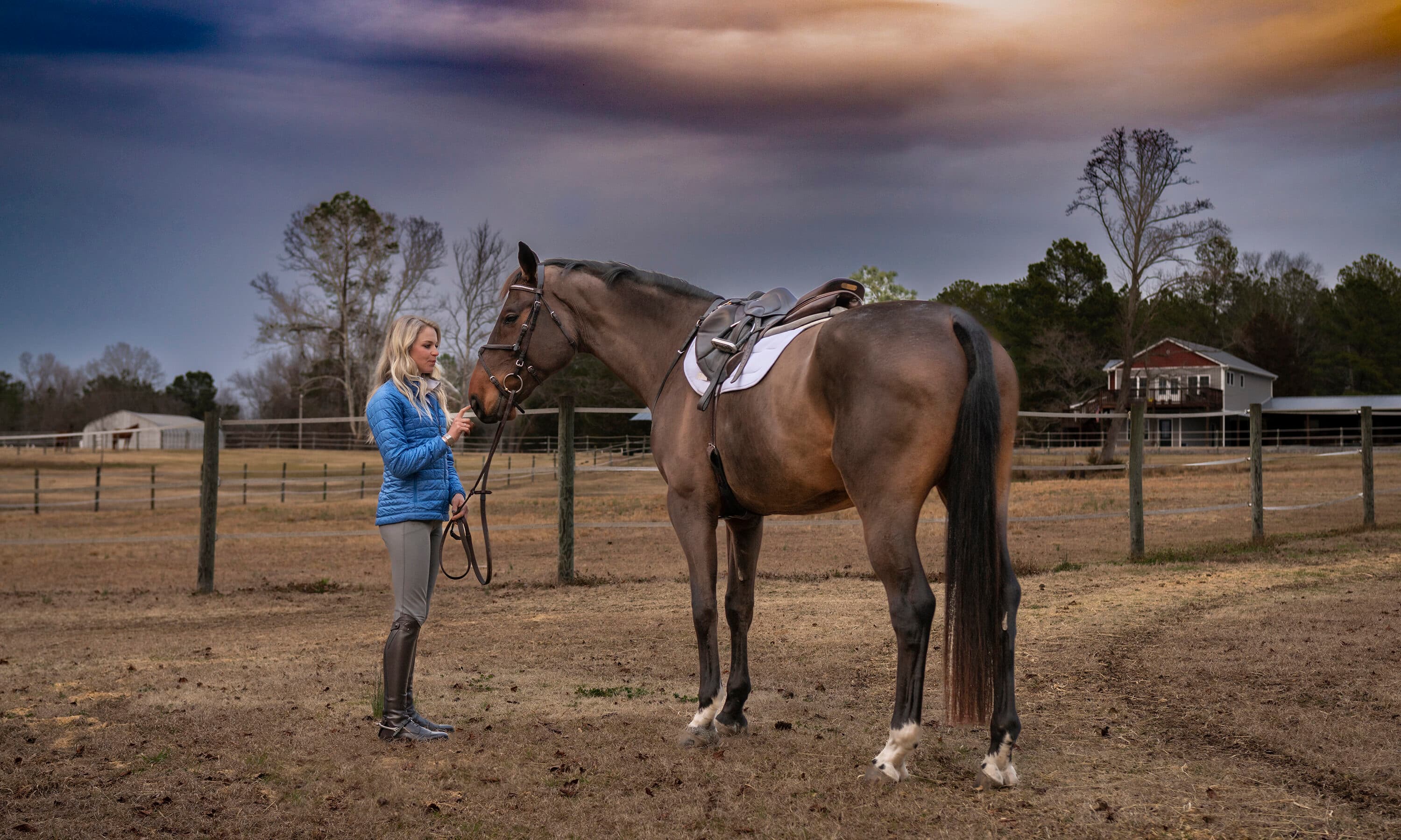 “Matt pretty majorly stepped up,” she said. “He wasn’t into horses when we met, but when I had surgery, he learned how to feed, he learned how to do stalls, he learned how to blanket—all of it. All of it, so that I could just go out to the barn and hang out. He sort of did all the interacting with the horses, especially right after surgery, when it was pretty fragile still. The concern was you don’t want a horse to smack you in the chest or something; you can’t take a direct hit to the chest. You can’t drive for quite a while, for the same concern, so Matt chauffeured me around and came out to the barn to take care of the horses for me while I just sat there and instructed him.”