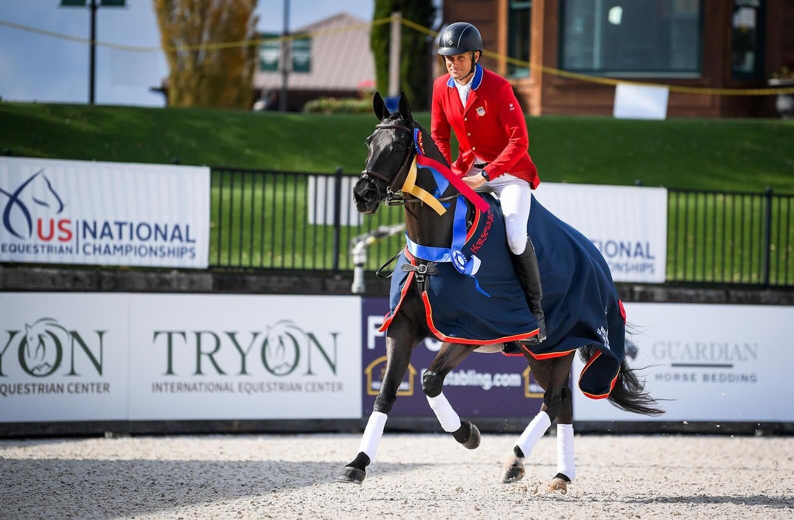 Halliday-Sharp’s loss was Boyd Martin’s gain, as he and Christine, Thomas, and Tommie Turner’s 12-year-old Trakehner gelding, Tsetserleg TSF (Windfall x Thabana), turned in a double clear round to take over the top spot and the National Champion title with a final score of 28.10. As the top finishing U.S. competitor in the CCI4*-L Eventing National Championship, Martin is awarded the Guy V. Henry Memorial Trophy and Martin and the Turners are awarded the Gladstone Challenge Trophy.