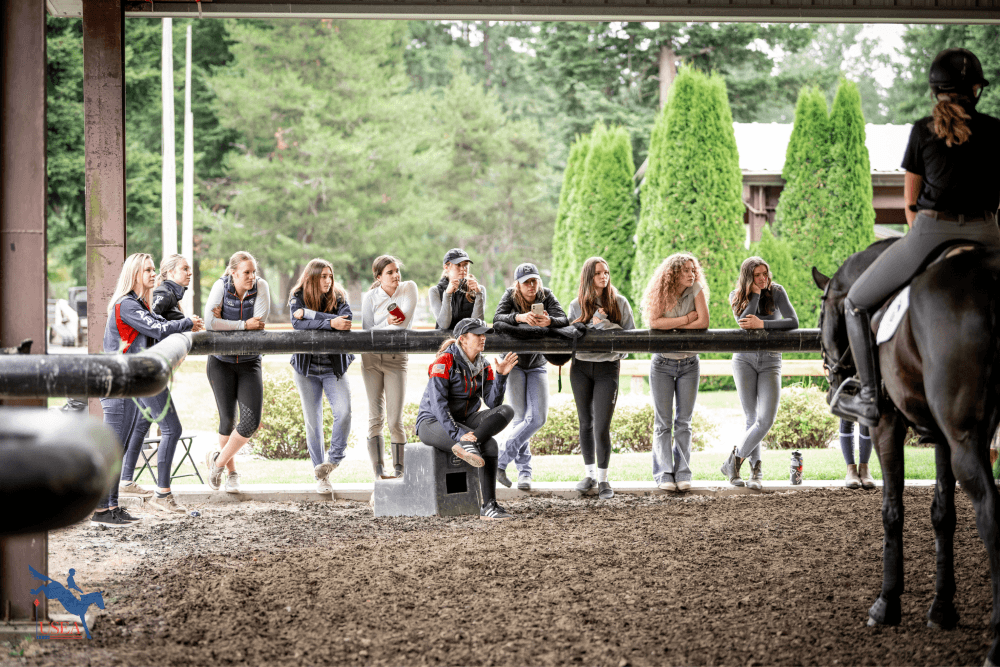 After lessons, the group set their course for tomorrow’s show jumping lessons, then gathered at the barns for a lecture on horsemanship. Brown reviewed a document that was created by Max Corcoran and Emma Ford, coining it a “how-to” on being a professional. The discussion covered everything from safe handling practices to FEI-approved supplements and therapies, and Brown encouraged the participants to take the seven-page document home and treat it as a guide for additional education and research on best practices in caring for their equine counterparts.