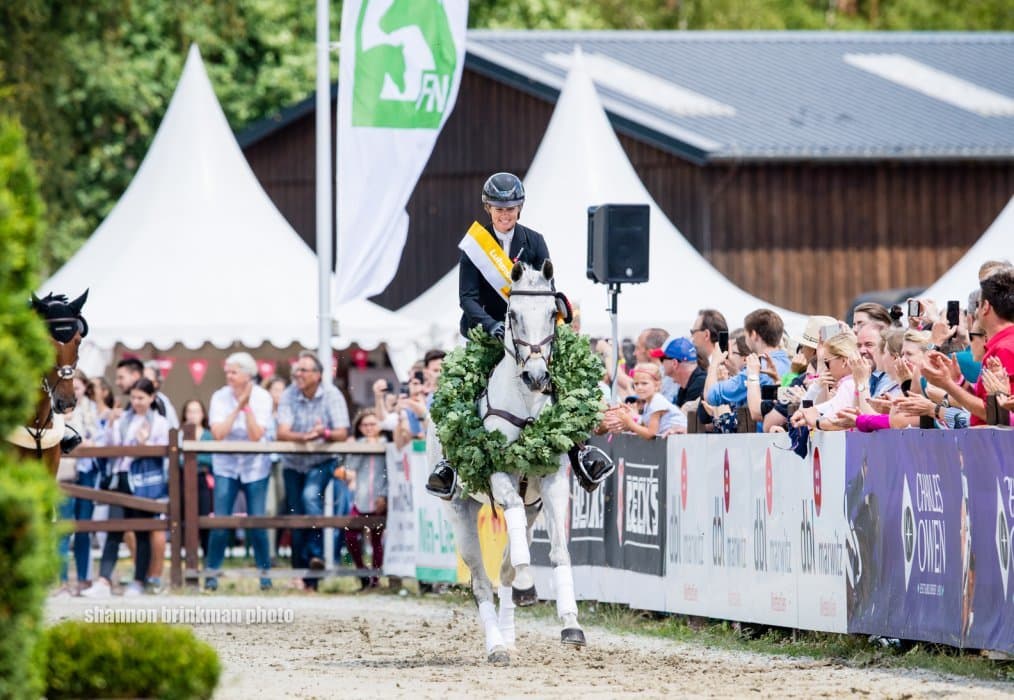 Krajewski is over the moon to have won again, this time not only the class but also, for the first time, the national title. “The pressure was definitely on when we came into the final phase today. Although Sam is a very good show jumper, who rarely makes a mistake, I did feel a little nervous. Having one fence in hand helped me stay calm and focused though.” As Krajewski only just got back from competing her second horse at Bramham in England, she had to leave Sam in the capable hands of her team, who prepared him just right. “Because I have been away, I really did not expect this. I feel immensely proud!”