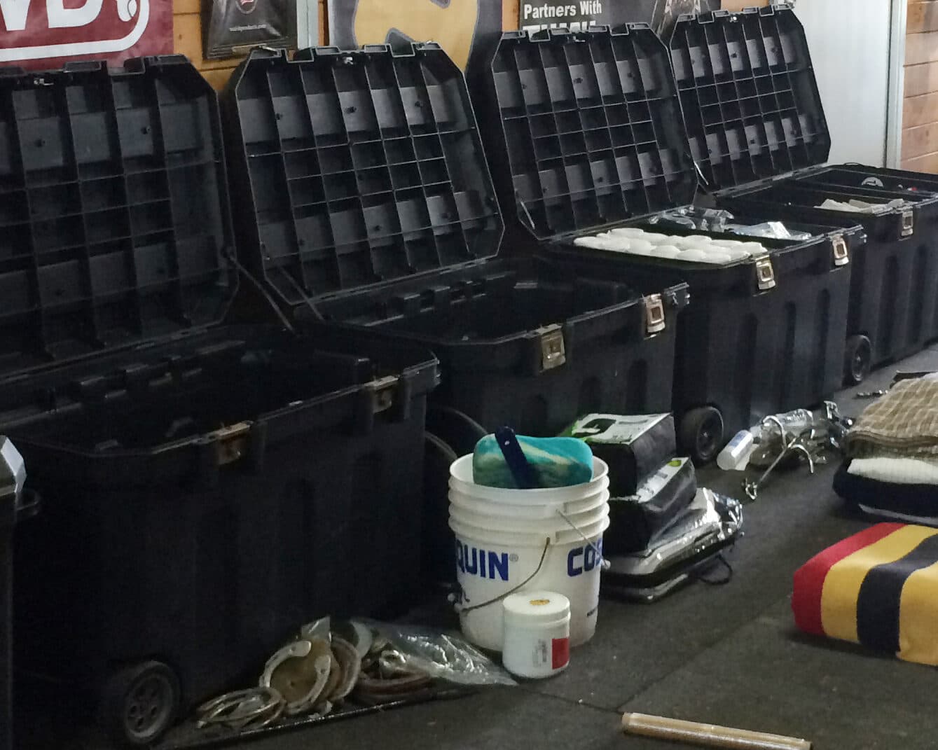 Tupperware and mesh bags - little container in big containers keeps things tidy – use Tupperware to contain boot polishing kit, tack cleaning, braiding kit, treats and any other loose widgets. The mesh bags (lingerie size in the laundry section of Target) are great for keeping cross-country boots, show jump boots, wraps and quilts, etc. all organized. If you have multiple horses, each horse can have their own mesh bag with their boots AND you can put the boots back in the bag to be washed and instantly rematched.