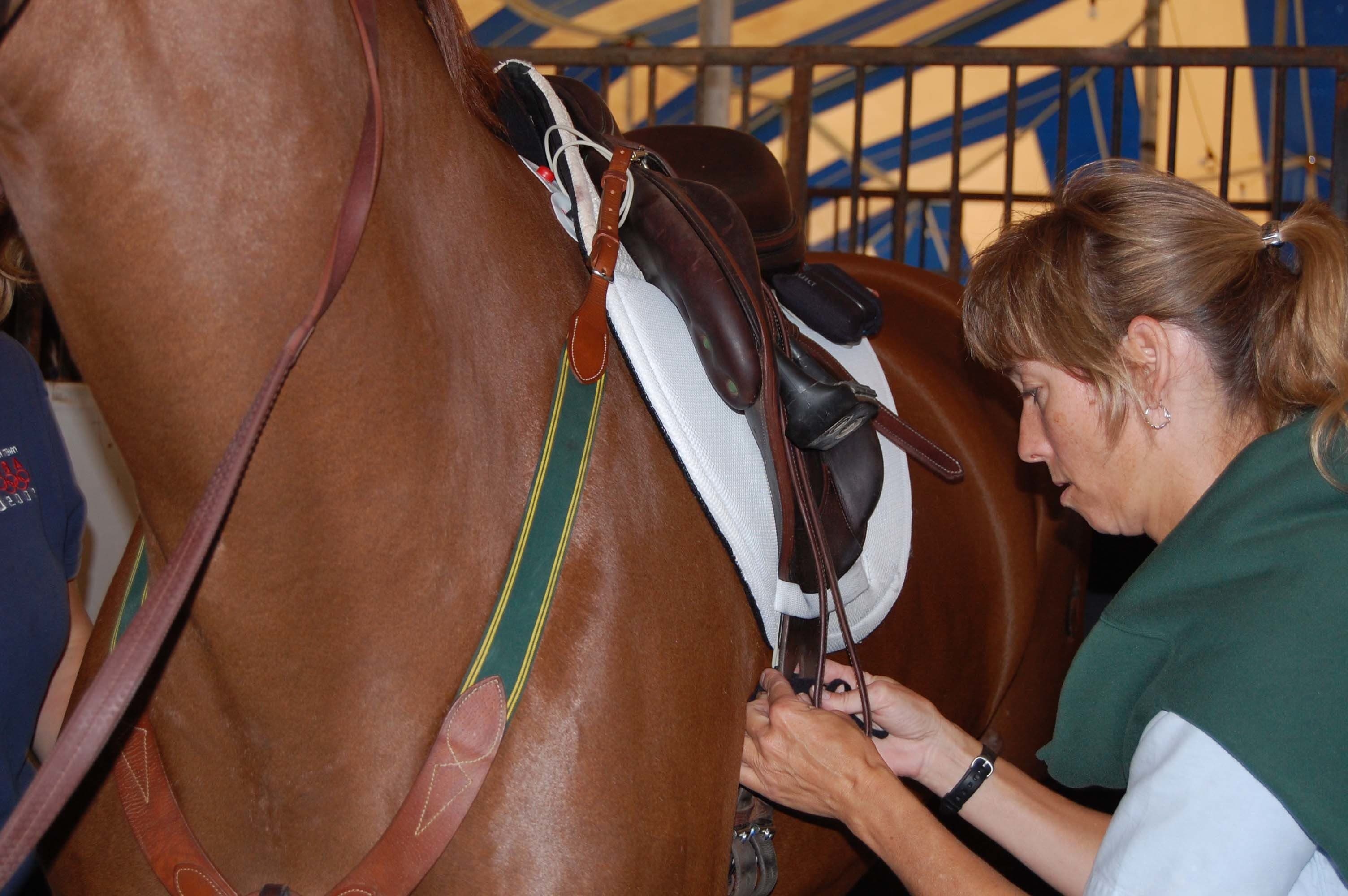 Dr. Catherine Kohn working at the first Cardiopulmonary study in 2009. USEA/Leslie Mintz Photo.